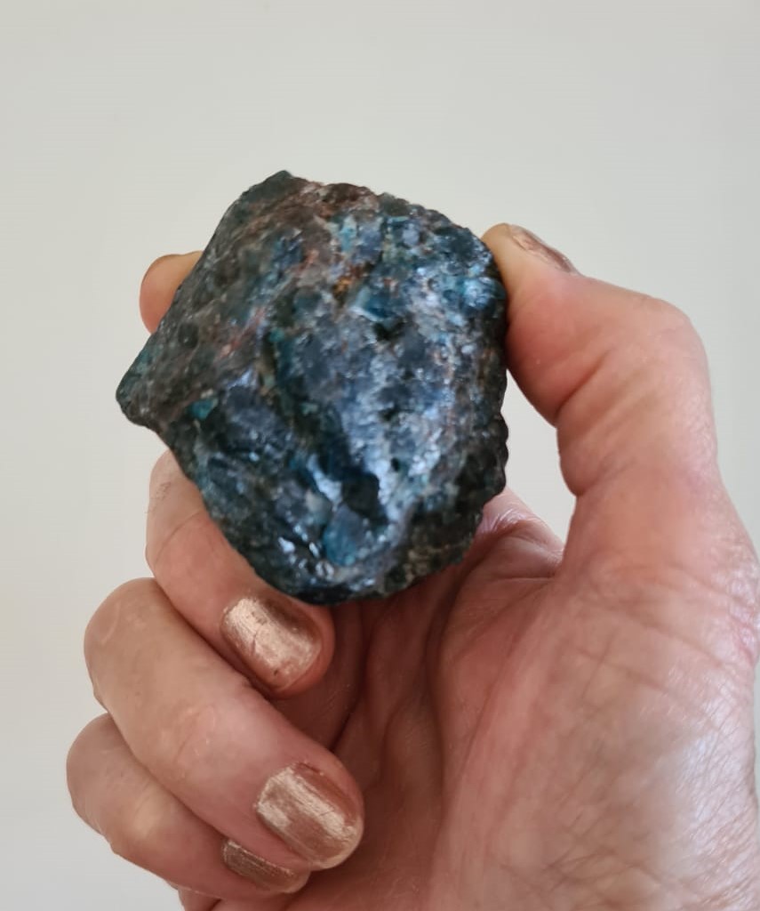 A Apatita é um clorofosfato de Cálcio. Apresenta traços de flúor, fósforo, cloro, estrôncio, chumbo, sódio e potássio. Trata-se de um mineral que apresenta frequência vibracional alta. Atua como uma Pedra Vitalizadora.