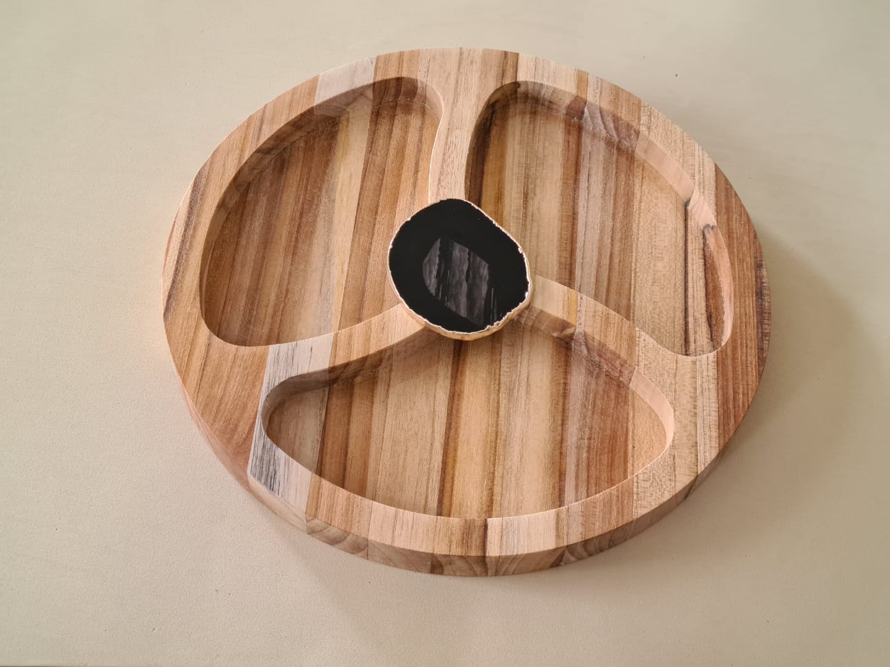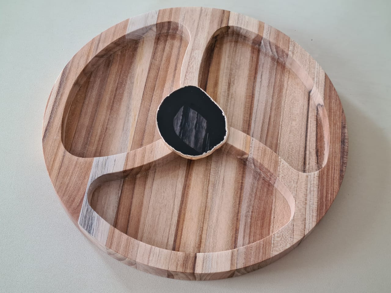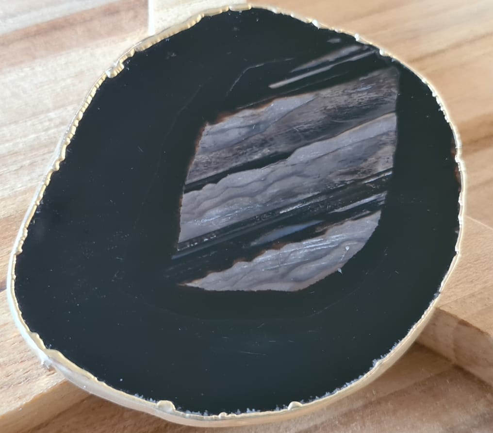 Petisqueira de madeira com ÁGATA NATURAL PRETA