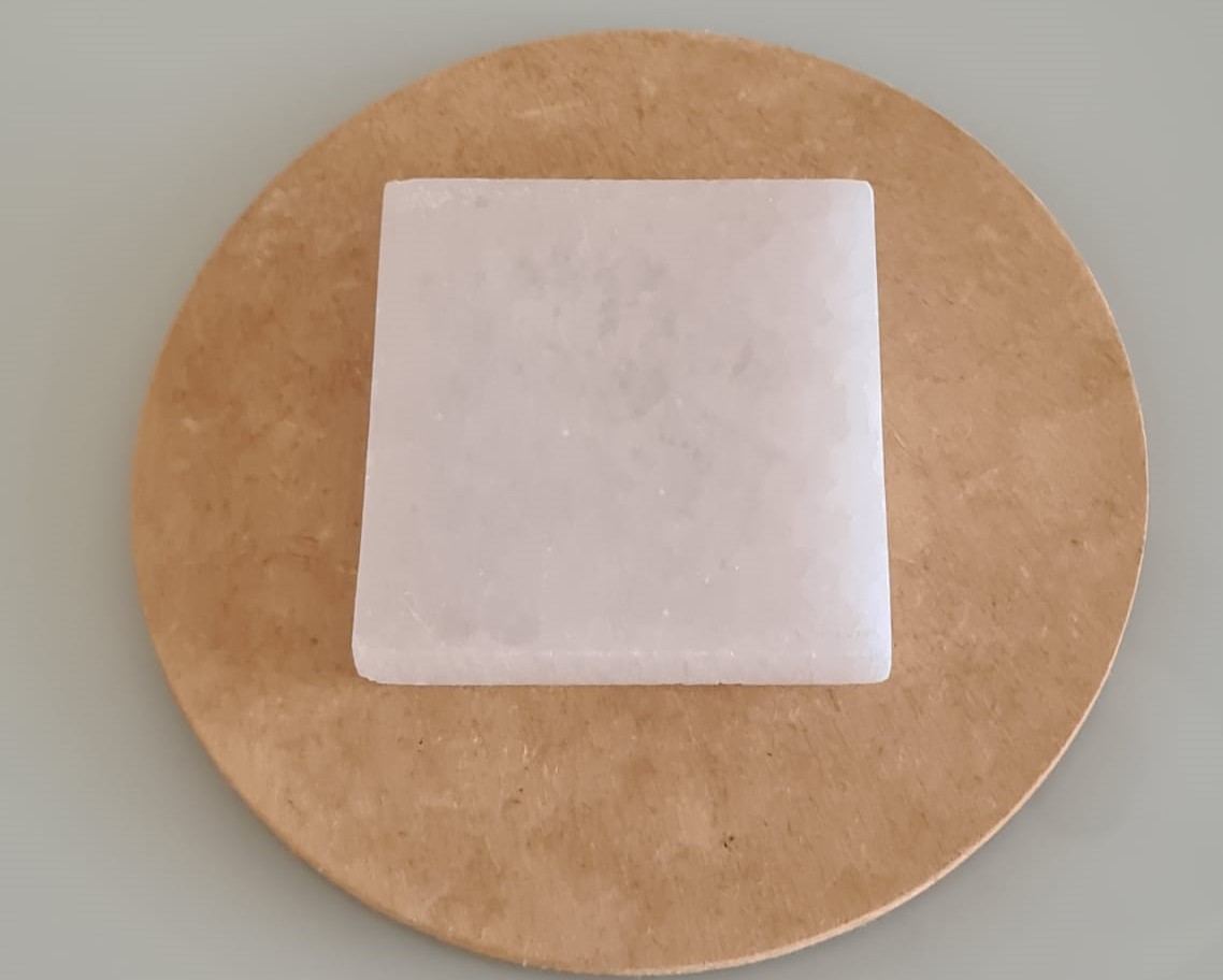 A placa de Selenita proporciona a purificação e energização de outros minerais/cristais. Após limpeza, colocar os minerais sobre a placa e deixar por aproximadamente 15 minutos.