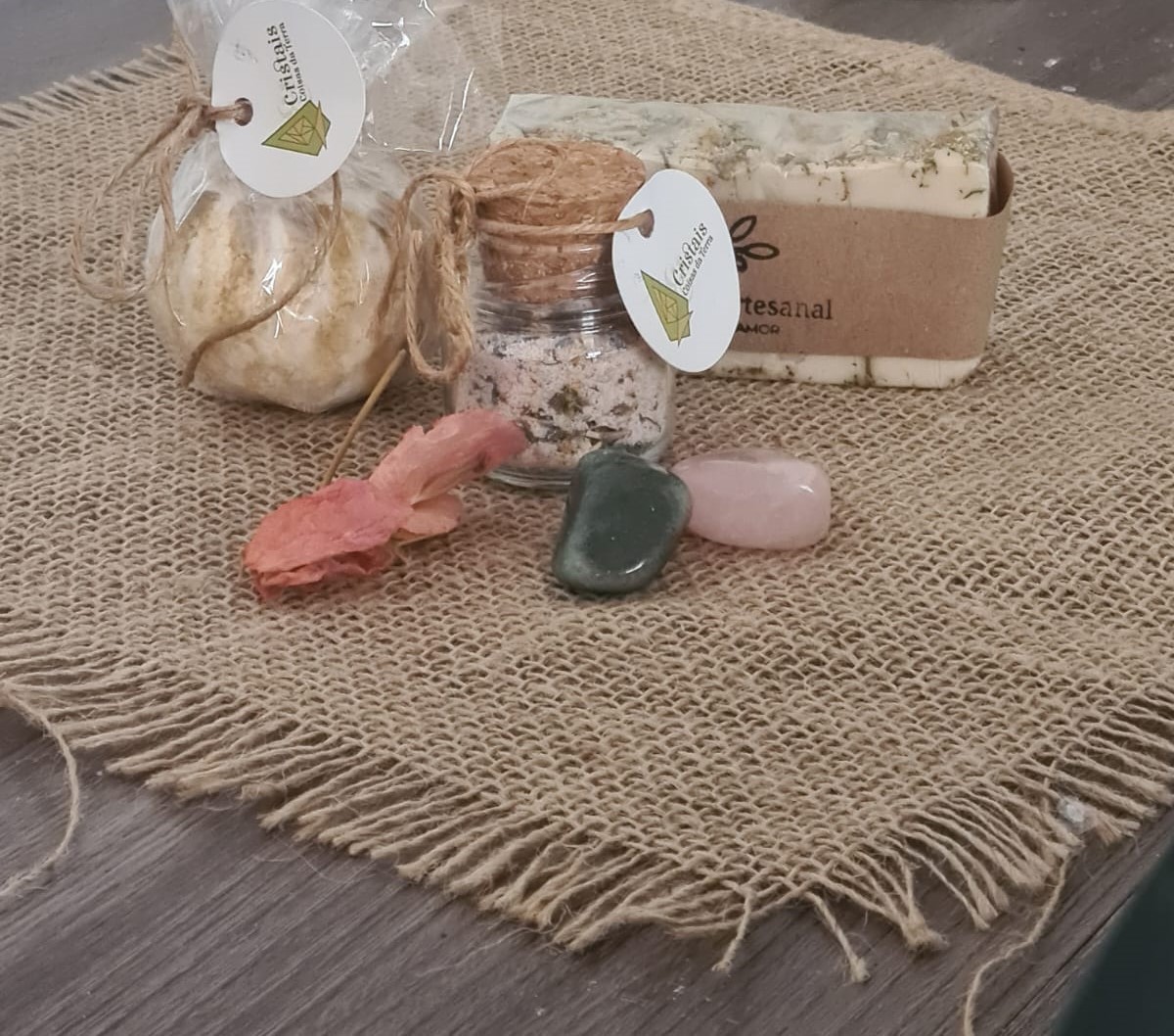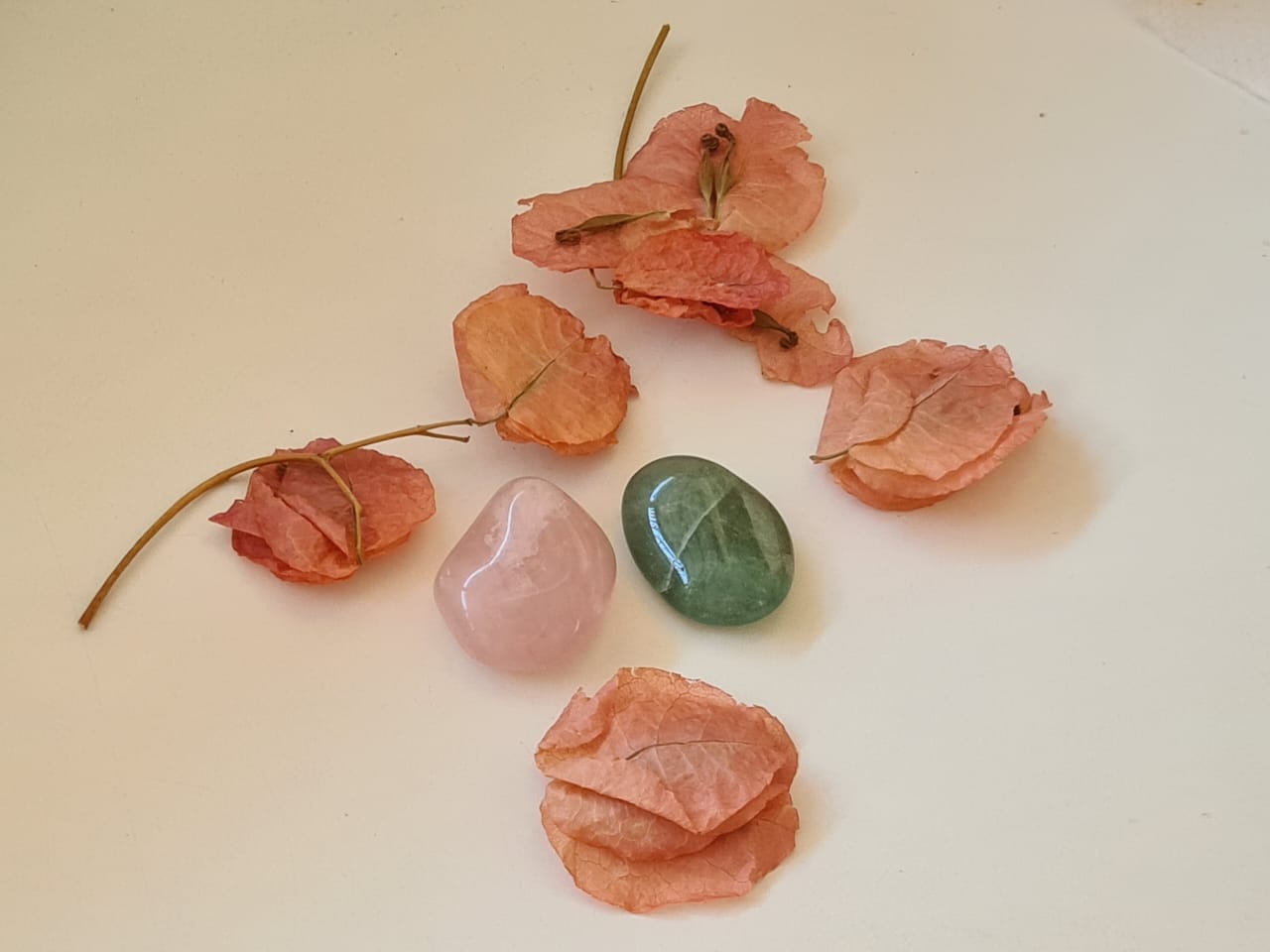 Acompanham o kit dois cristais que atuam vibracionalmente promovendo o equilíbrio emocional. Atuam no coração, favorecendo a autoestima e a energia do amor.